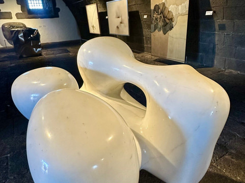 Statt also einfach eine restaurierte Festung für die Besucher zu öffnen, kriegt man hier den doppelten Genuss zum Preis von einem: man erahnt die Festungsanlage, klettert Treppen und Stiegen rauf und runter, aber alles in einem herrlich und architektonisch ausgezeichnet restaurierten Ambiente, voll mit moderner Kunst.