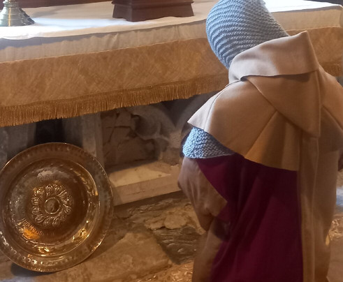 The Arthurian display in the great barn was truly amazing, the information boards, Christmas trees, period music, lighting, tableaux. Central to the display incredible willow knights in combat.