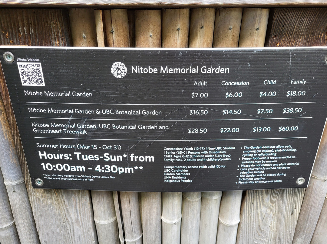 花园里没有任何指示牌,显然是故意为之。园内没有洗手间,但售票处的工作人员应该可以指引您前往最近的洗手间。我最近才发现UBC植物园的网站上有新渡户花园的地图可以下载。地图上包含了丰富的细节信息,还为想要静心游览的新游客提供了一条逆时针方向的自助游览路线。
