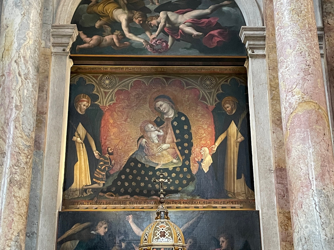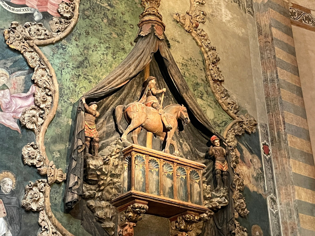 This is the largest church in Verona, and it houses several art masterpieces, by authors such as Gabriele Caliari, Liberale da Verona, Giovan Francesco Caroto, Girolamo dai Libri, Altichiero da Verona, Martino da Verona, Pisanello, Giambono, Second Master of St. Zeno, Francesco Morone, Felice Brusasorzi, Claudio Ridolfi, Nicolò Giolfino, and many more.