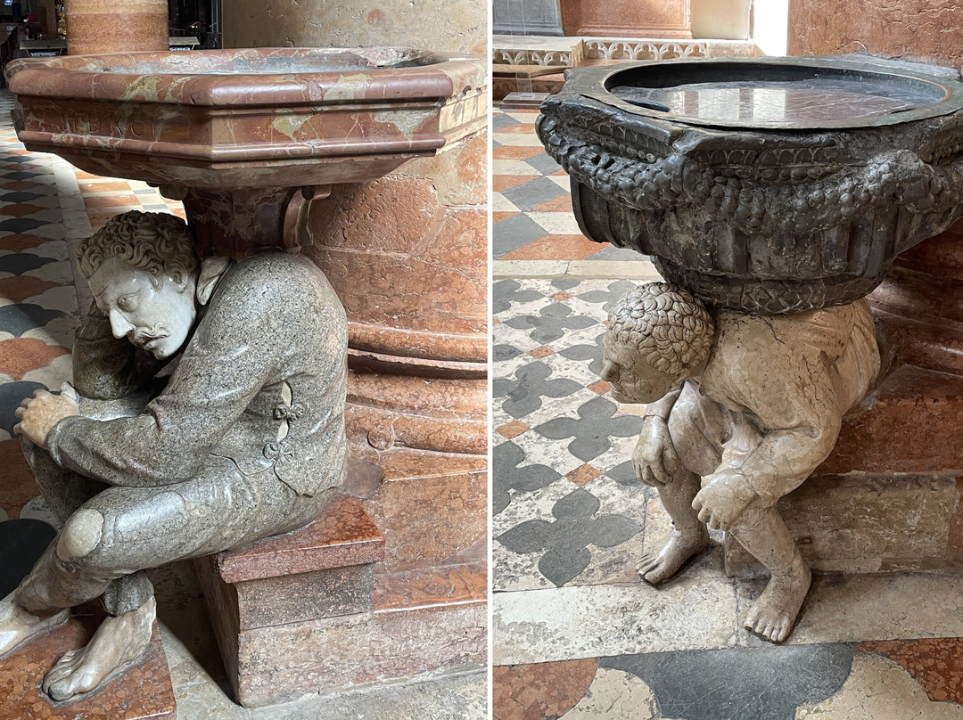 现存教堂始建于约1290年,历时两个世纪才最终建成——除了从未完工的正面。新教堂供奉的是维罗纳的圣彼得,但圣阿纳斯塔西亚的旧名保留了下来,如今这座圣殿仍被称为圣阿纳斯塔西亚圣殿。教堂周围环绕着数座侧堂和祭坛。