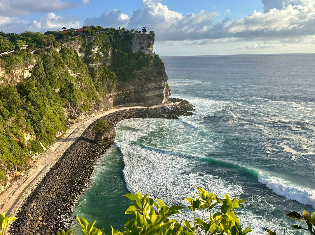翻译:乌鲁瓦图寺是一座巴厘岛印度教海神庙,位于印度尼西亚巴厘岛的悬崖之巅,以其壮丽的海景和日落背景而闻名。它是巴厘岛六座具有重要精神意义的重要寺庙之一,也是游客观看每日凯卡克火舞的热门地点。这座寺庙也因栖息于此的长尾猴而闻名。