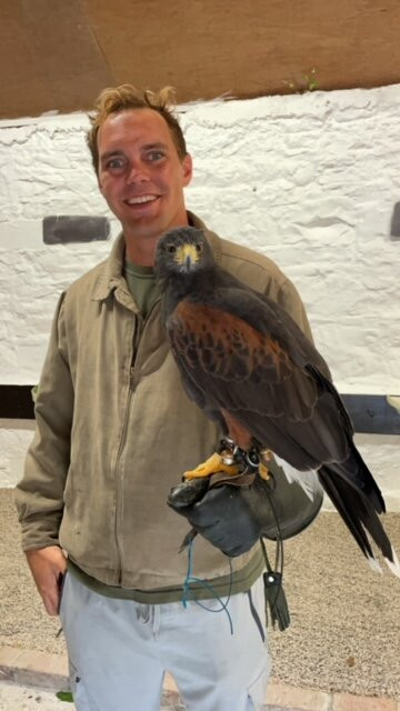 翻译:从头到尾都是一次非凡的体验,真的!一定要来!设施、员工、体验和动物都非常精致。这里的动物得到了很好的照顾,也受到了很好的尊重。鹰步道比我想象的要迷人得多。我们从康纳尔那里学到了很多东西;他教给我们并分享了关于所有鸟类、它们的性格、倾向、好恶、能力的大量知识,他带着对它们的爱和欣赏以及他在与它们合作中所扮演的角色来做这件事。