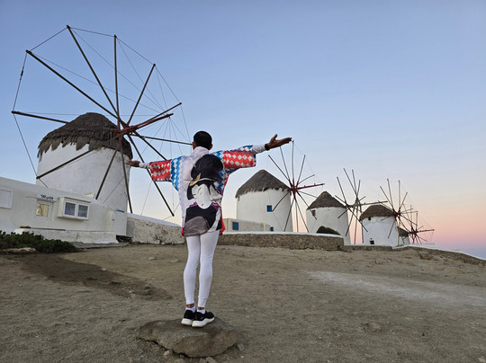 翻译:米科诺斯岛的古老风车是这座岛屿的独特象征,也是游客拍照留念的必游之地。因此,这里全天都挤满了游客,尤其是在傍晚,爱琴海的日落格外美丽。如果想避开人群拍照,建议清晨日出时分前来,这样就能拍到人少景美的照片。