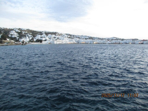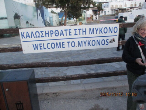 Unfortunately, a ferry from Celestyal Discovery cruise ship brought us to the Old Port as the sun set. Shops were closed and night cafés had not yet opened. Few locals were out and our group seemed to be the only tourists in the unusually warm late November early evening. The guide said Mykonos was made famous by hippies and artists.