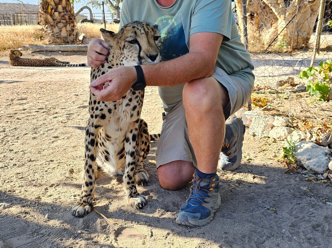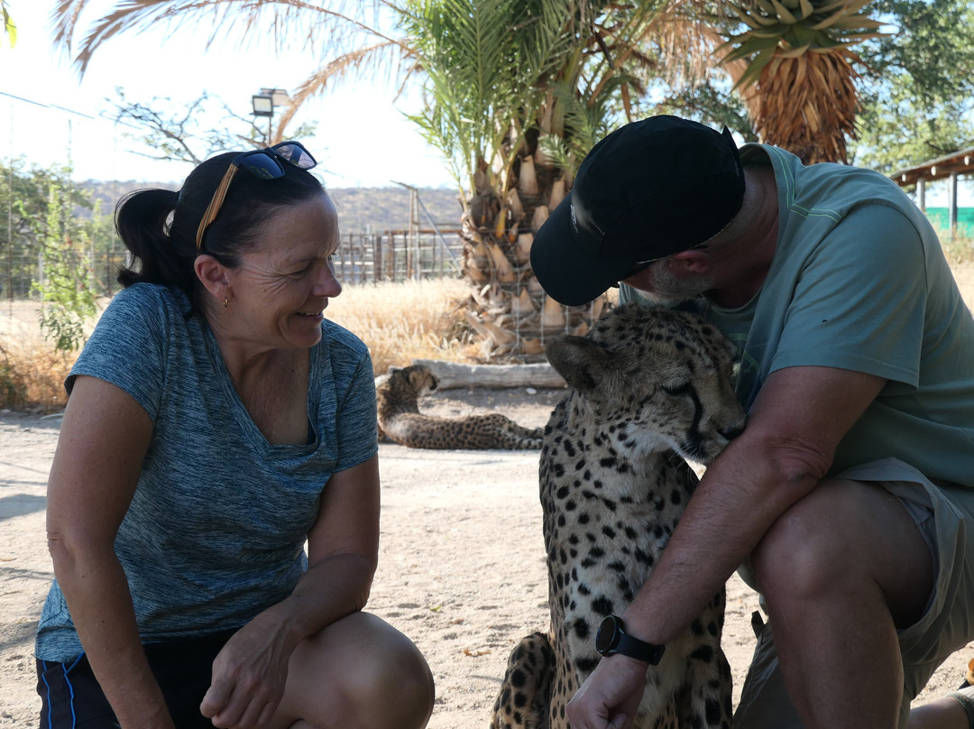 我们和马可的 5 只左右的狗和这两只驯服的猎豹在一起真是太棒了。如此宁静和轻松。几乎就像和猫在一起一样。其中一只花了整整 15 分钟舔我的胳膊和腿。我很乐意允许!强烈推荐。物有所值。如果您想了解更多,请在 You Tube 上搜索我们(“mattbriar”或“2 tiki touring Kiwis”)