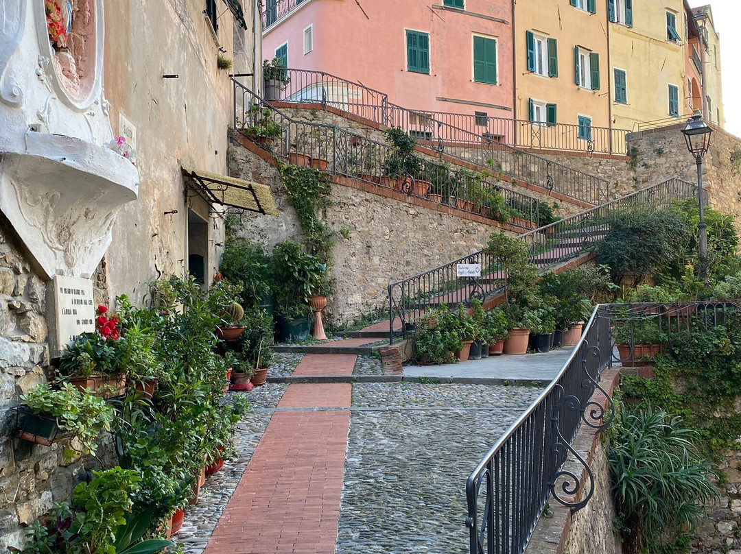 La sua voce come una musica, snocciolava ricordi, storia, eventi, simboli, ci ha trasmesso EMOZIONE, una grande EMOZIONE. Il tramonto ci ha trovati sotto la chiesa di San Pietro, ascoltando le sue spiegazioni sullo svolgimento della festa il 29 giugno, abbiamo capito di aver trovato non solo un preparatissimo volontario per illustrare questo bellissimo tour, ma, un AMICO. Ancora un poco di tempo per vedere archi, volte, salite, discese, ancora in piazza, l'oratorio di S. Caterina....e.... c'era già buio...Abbiamo solo una cosa da dirvi. Prenotate il GIRAPARASIO. Guardate non solo con gli occhi, ascoltate le emozioni che salgono e lasciatevi guidare dal filo delle parole di Enzo o dei volontari e scoprirete non solo le spiagge, il sole ed il clima della Riviera, ma la sua storia e l'amore di questa gente per la sua terra.