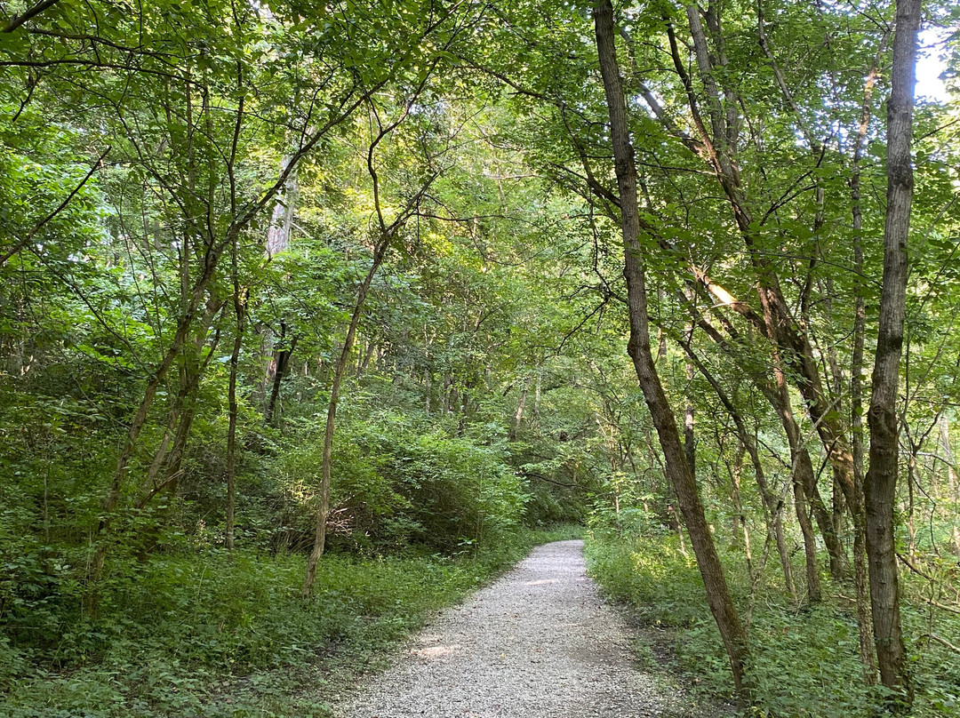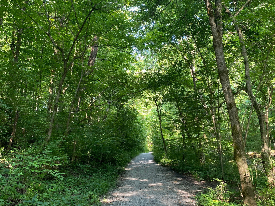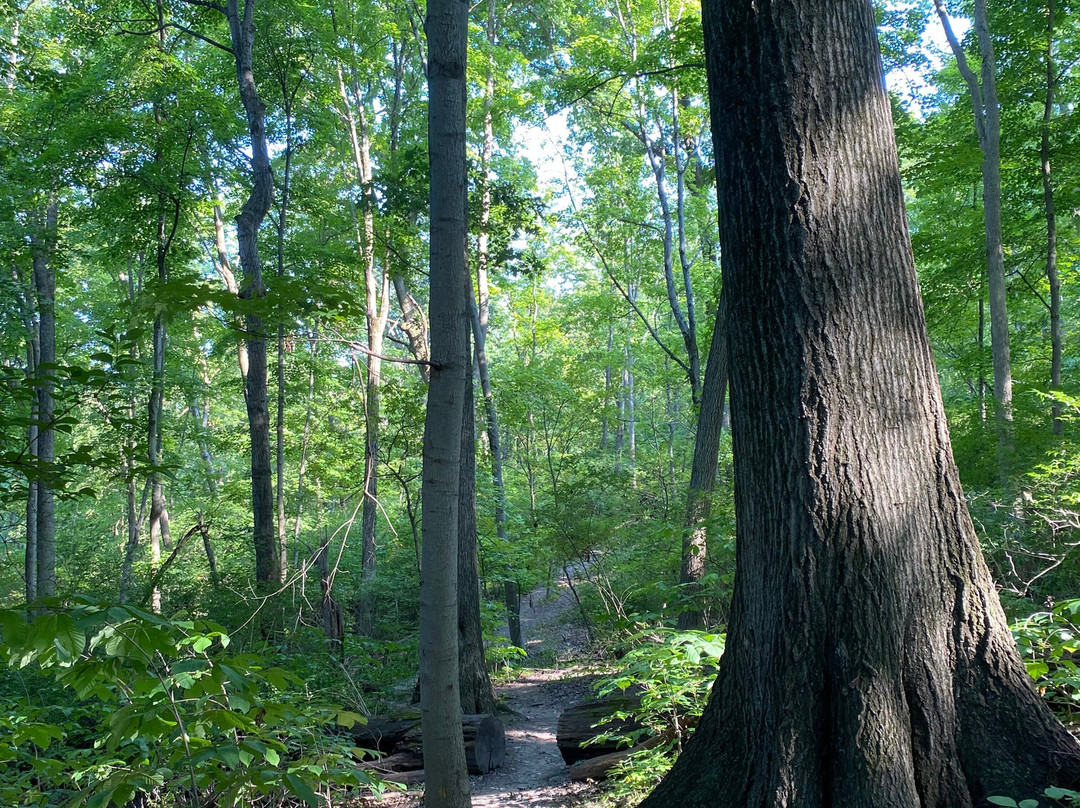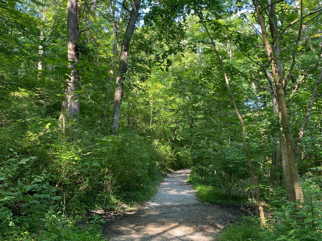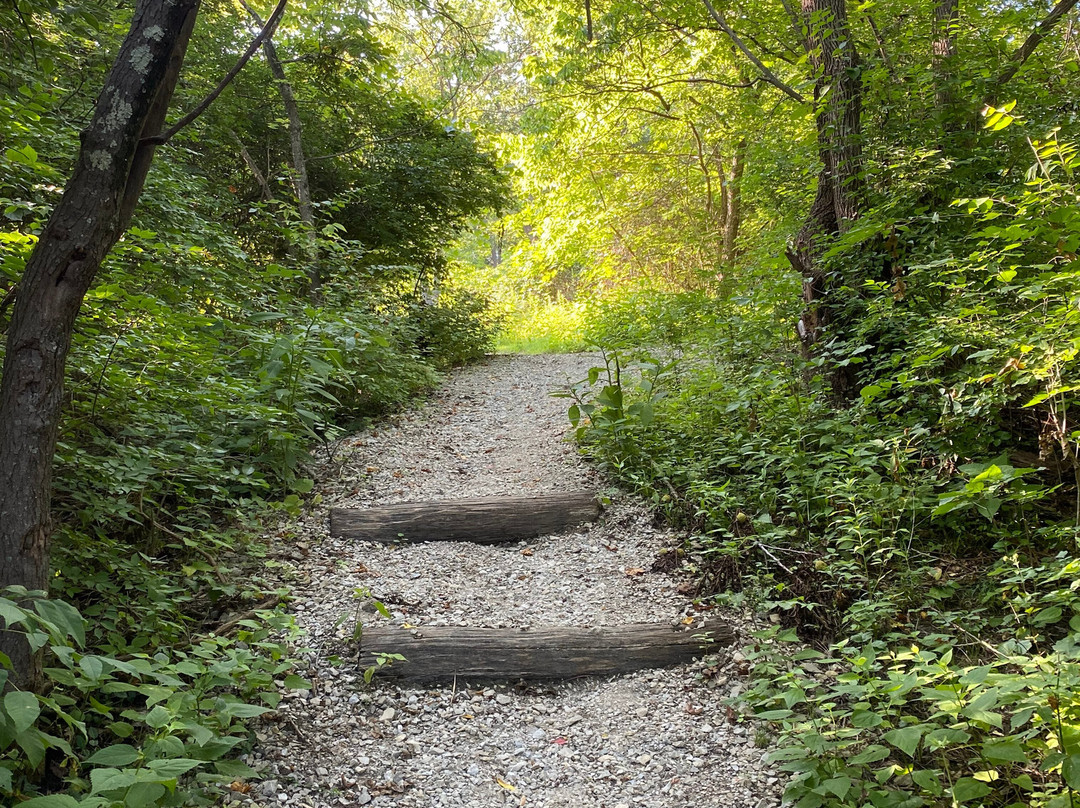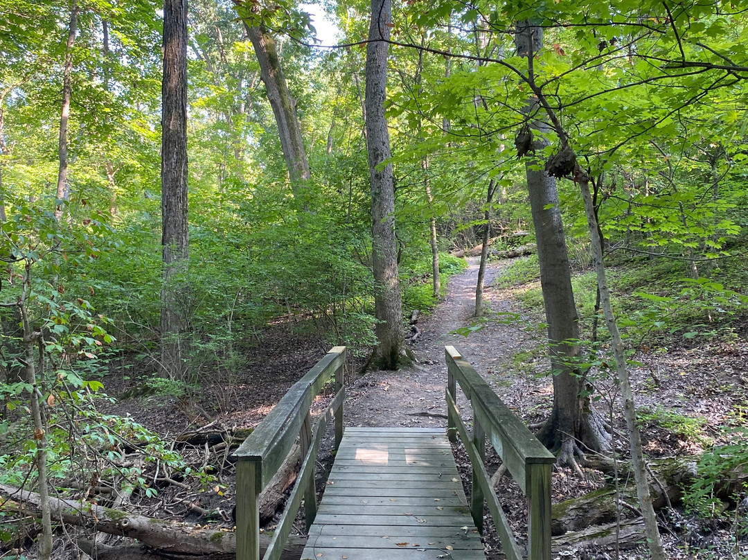 点评:Average trip. We arrived at approximately 5:30 pm and made our way towards the entrance of the trail. We opted to hike the Ridge, Bur Oak, Cliff and Tree Trail Loop, which was a 2.3 mile loop trail around the park. There were plenty of parking options to choose from. The trail was definitely on the moderate/difficult side, as it contained numerous steep inclines and declines. The trail took us through a forest, with occasional views of a stream. The trail was relatively narrow in certain sections. We did have to use AllTrails as a guide because the trail was not marked very well and we didn’t want to get lost. We encountered a huge pavilion in the middle of the trail, along with a play area for kids and multiple benches to sit and enjoy a meal at.