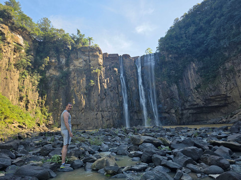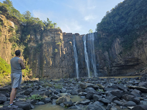 翻译:这个景点位于蓬塔格罗萨一位富豪的私人领地上。我们参观的那天是星期四下午两点,当时这里空无一人。塞尔吉奥热情地接待了我们,并向我们介绍了这里的历史,还详细介绍了普鲁登托波利斯的景点。景点本身有一个观景台,距离游客中心一百米。从那里可以俯瞰64米高的瀑布。这座壮观的瀑布位于帕托斯河峡谷,周围环绕着陡峭的悬崖,景色优美。瀑布倾泻而下,汇入一个巨大的水潭。瀑布原本可以拥有更大的水量,但一部分水被引流用于发电。如果想从下方观赏瀑布,需要支付20雷亚尔,沿着山坡向下走大约400级台阶(金属楼梯),到达发电站的底部。那里的景色令人叹为观止!翻越数百块岩石,即可到达湖边,湖水从湖面倾泻而下。尽管回程有些辛苦,但这段徒步之旅的确美不胜收。