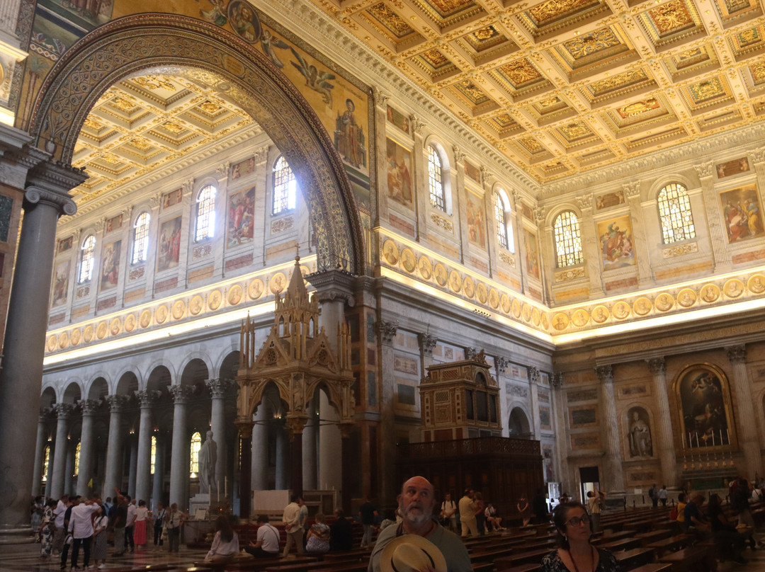 点评:Frente a San Pedro, Santa María o San Juan, con esta se conforma el cuarteto de basílicas papales. Es la menos conocida, seguramente por estar extramuros, lejos de las zonas habituales, con lo cual el acceso es más difícil si vehículo o sin conocer los transportes públicos. Nosotros fuimos en una visita guiada que incluía también las Catacumbas y Basílica de San Esteban.