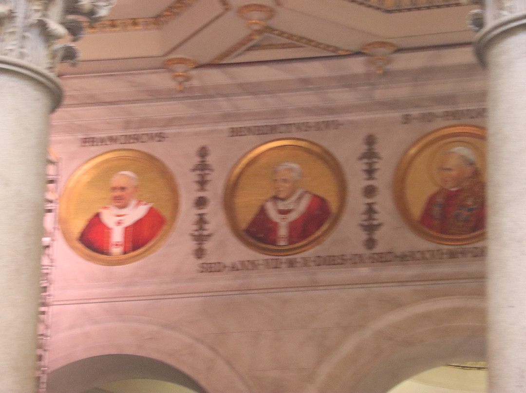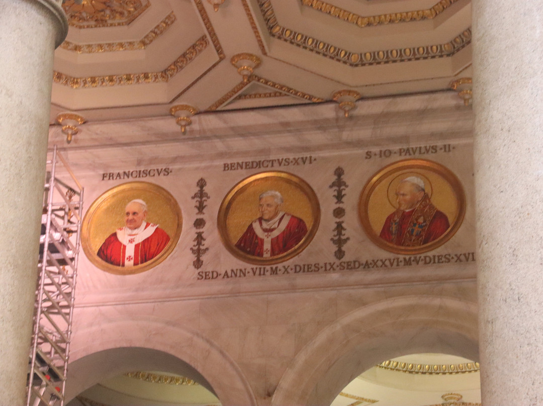 这座大教堂规模宏大。最引人注目的是其拜占庭式的内部装饰,以及墙上装饰的历任教皇的徽章。他们当时正在为最后一位教皇做准备。