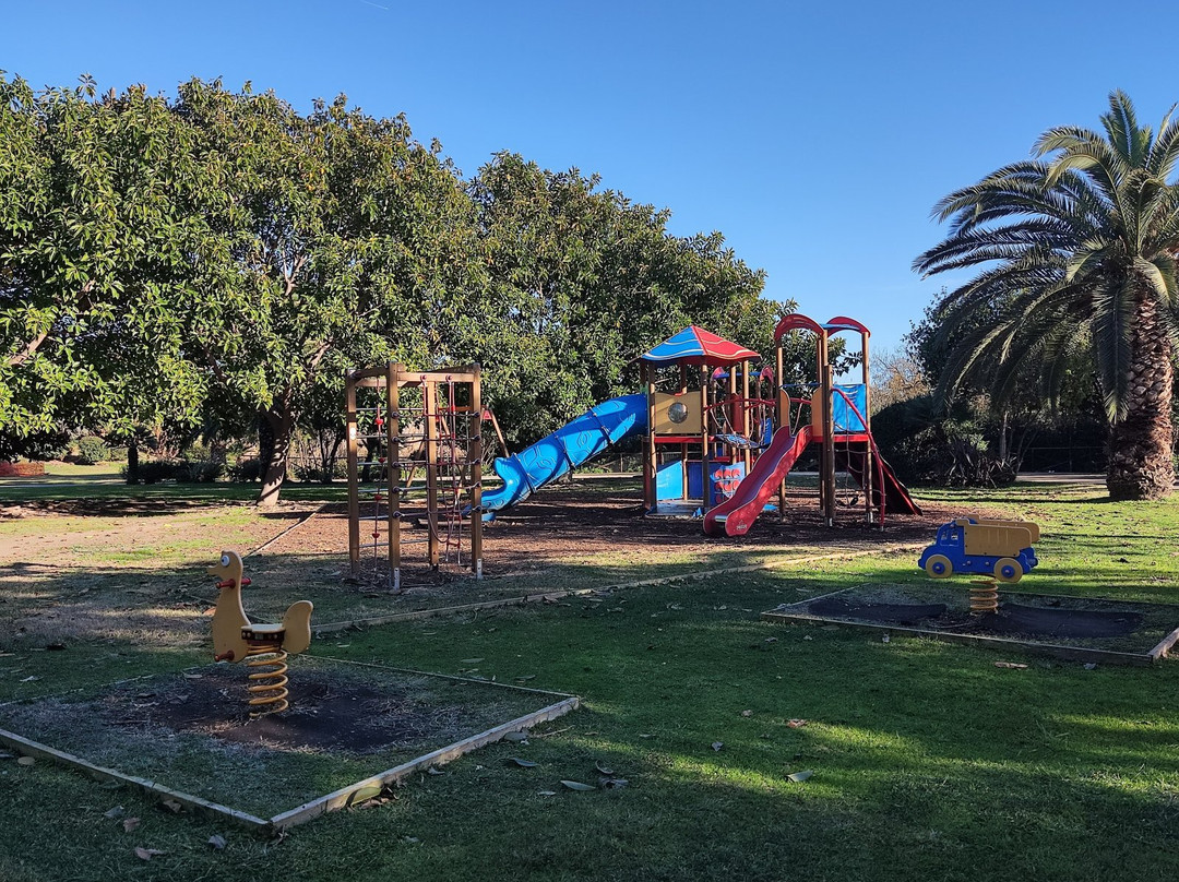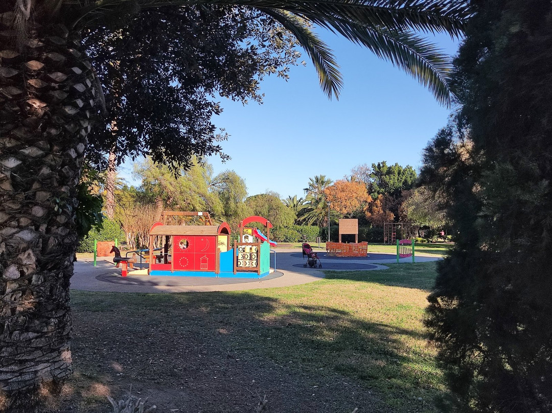 它的形状大致呈三角形,特点是完全平坦(除了一小块高地,上面有一个方便的茶点点),并且有宽阔的道路穿过,道路的混凝土表面为残疾人提供了完全的通行能力。除了树木、树篱和灌木丛等丰富的植被外,它还以大片草坪为特色,并通过围栏和小面积补种的方式定期进行再生。这里还有几个供儿童玩耍的区域和几个配备设备的健康区,还有一个专门供狗玩耍的围栏区域。它的特色还在于一座人工湖,湖上有一条人行道穿过,人们经常可以在湖中欣赏到火烈鸟,也有一些河狸鼠生活在那里,但这个公园真正的主人是猫,它们数量众多,性情温顺,总是在寻找拥抱,或者更好的是,想要尝尝东西。