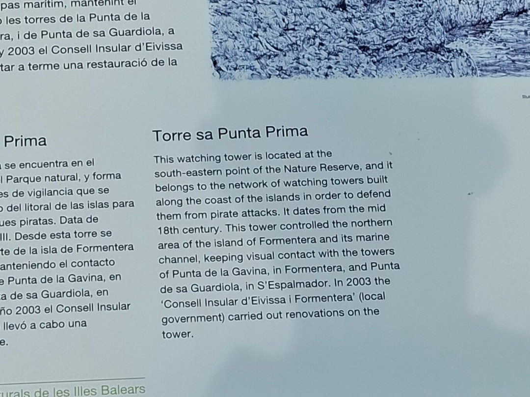 从附近的信息牌上,我们了解到这座塔楼控制着岛屿北部,与福门特拉岛的加维纳角塔和埃斯帕尔马多尔的萨瓜迪奥拉角塔保持着视线联系。