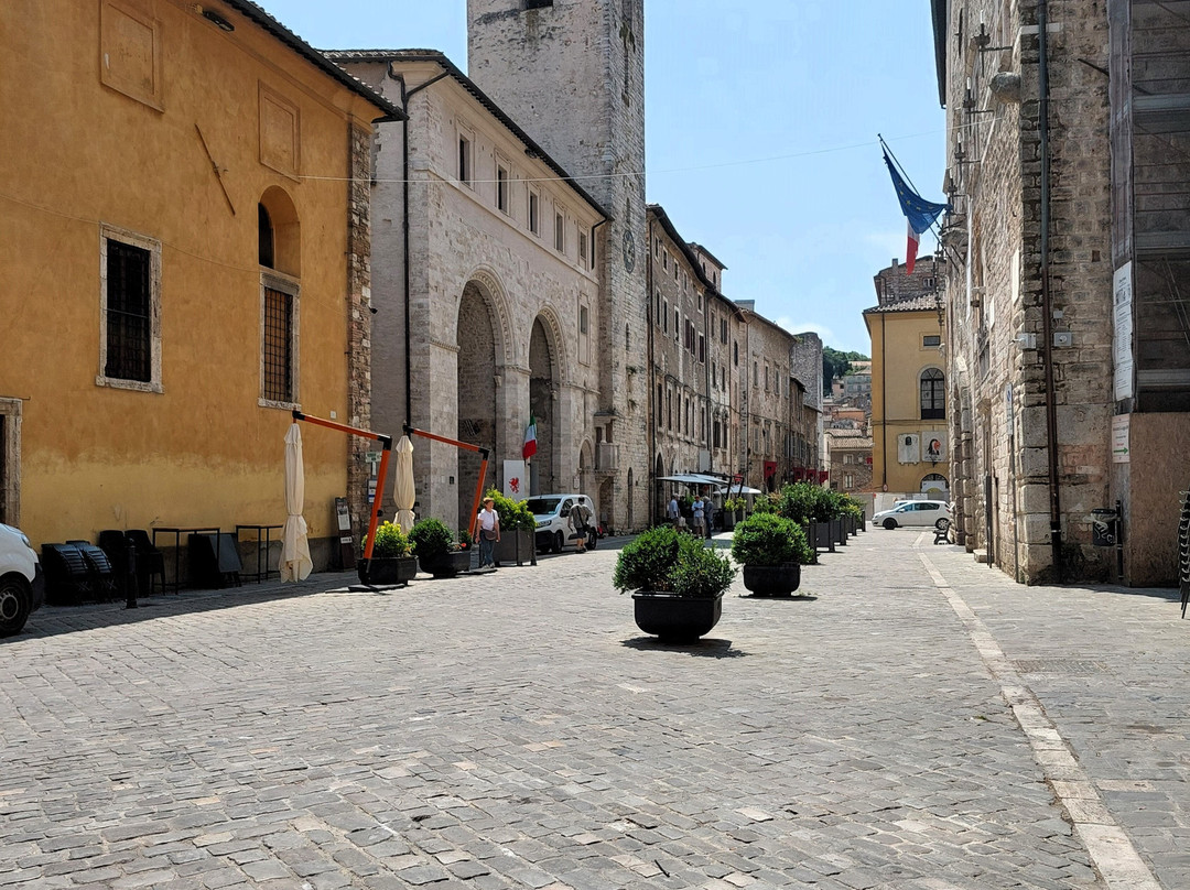 点评:Ex foro della città romana, si trova in posizione centralissima e si presenta come uno spazio stretto e lungo. Pochi i negozi (anche se non mancano un ristorante e un paio di bar, peraltro al mattino molto frequentati), mentre a prevalere e senza dubbio l'aspetto monumentale. Qui infatti, a parte una fontana trecentesca posta sul bordo settentrionale (simile a quella di piazza Garibaldi), tra i vari palazzi medievali e rinascimentali che gli fanno da cornice si fronteggiano due dei più notevoli edifici civili della città: il trecentesco palazzo dei Priori, con l'alta torre civica e accanto il piccolo pulpito da cui si leggevano i bandi, nonché la bella loggia al piano terra; il duecentesco palazzo del Podestà (con modifiche nel '300 e nel '400), realizzato riunendo tre case-torri e oggi sede del Municipio (a parte ammirare i numerosi elementi particolari della facciata, merita una visita anche il cortile interno). Similmente a piazza Garibaldi, anche se in minore misura, durante la mattina c'è un po' di caos, a causa del fatto che è aperta al traffico, con auto e soprattutto furgoni che transitano e sostano in vari punti della piazza; verso l'ora di pranzo poi tutto si calma e la piazza diventa più vivibile.