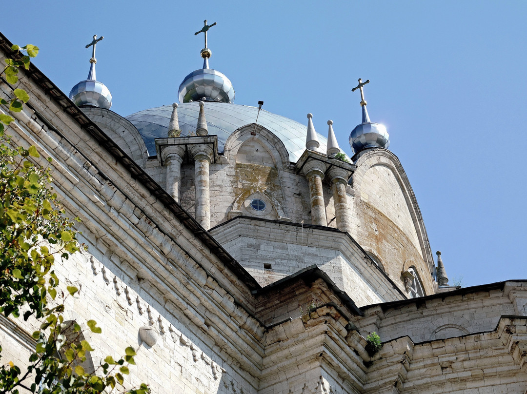 这是一个小村庄(居民不足两千),村中心却矗立着一座巨大无比、近乎怪诞的寺庙。它的建筑风格非常独特,在东正教教堂中从未见过。伪哥特式?新哥特式?这些名称都无法解释它的风格,尤其是在你进入寺庙内部之后。二楼当时关闭了,所以我无法评价;我没能进去参观。但一楼完全空旷。或许是建筑工艺的精湛工艺导致了这种情况?又或许是因为在建造二楼之前,他们先加固了一楼?总之,里面全是柱子和金属杆。越靠近祭坛,柱子就越复杂精巧,横截面也越来越大。这种精巧的设计最终导致圣像屏被柱子遮挡,几乎难以辨认。这里也没有真正意义上的祈祷厅:从入口到圣像屏之间只有一条长长的走廊,柱子之间是一片狭窄的空地,遮挡住了圣像屏。在我看来,这纯粹是一个建筑设计上的失误……