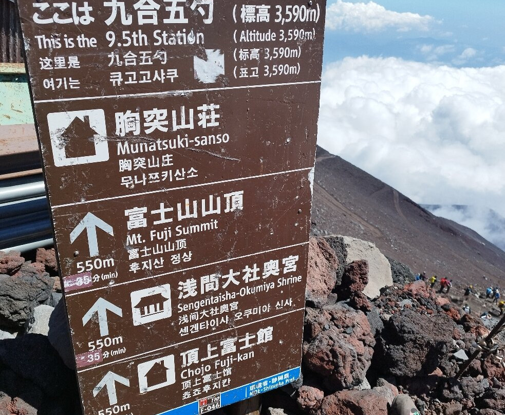 翻译:富士山四条登山路线之一,从第五站开始。正式的登山季节通常是从 7 月 10 日到 9 月 10 日。富士宫路线是四条路线中最短、最陡峭的。在正式的登山季节,您需要将车停在水塚停车场,然后乘坐班车前往第五站。(往返 2200 日元)。大约需要 30 分钟。班车通常从早上 6 点开始(天气允许时)。也有出租车。最后一班回来的巴士通常在晚上 7 点。