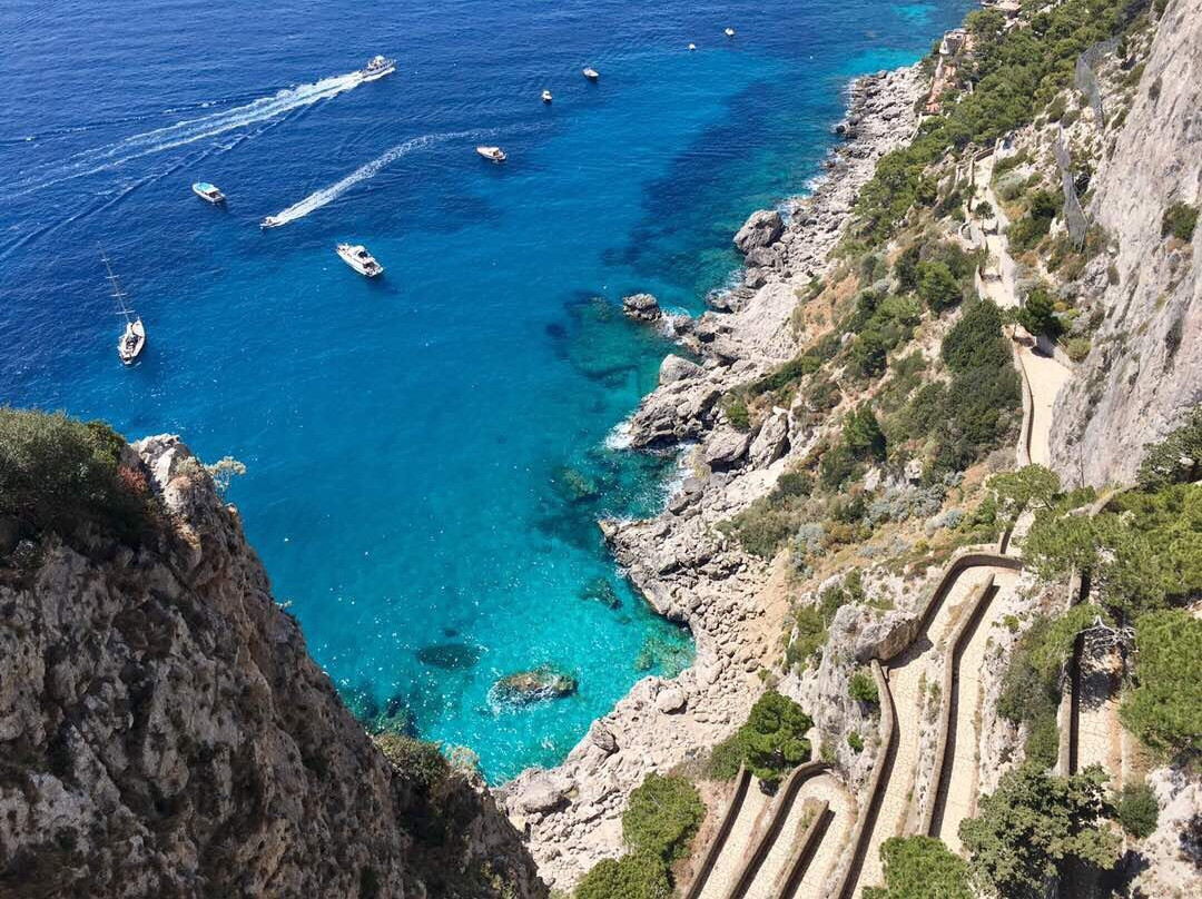 浪漫似乎在卡普里岛的空中飘荡,伴随着柠檬花朵的香味和新鲜的海洋空气。下车之后和人们一起乘坐水路运输涌向这个戏剧性的那不勒斯湾意大利小岛。蓝洞发出的光彩,突出的法拉可列尼巨岩和海宫增加了神秘的味道。在该岛南侧皮科海滩潜泳,这个地方据说是奥德修斯几乎屈服于塞壬歌声的地方。